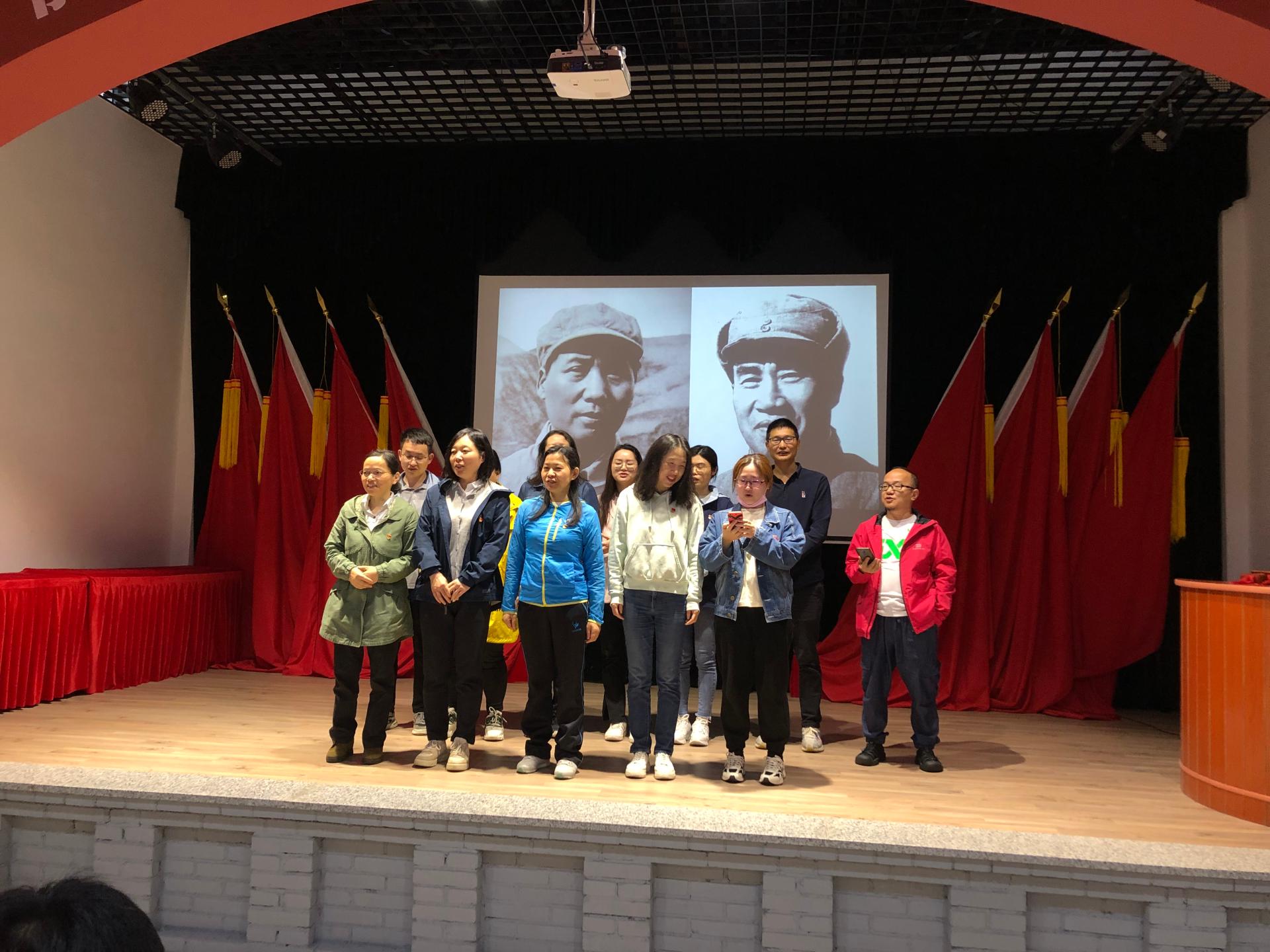 在大别山革命历史文化陈列馆,萝莉社 教职工党支部诵读革命经典、展开拉歌比赛。毛主席的《沁园春雪》仿佛把大家拉回到热烈的革命斗争场景,在黄河大合唱、南泥湾、没有共产党就没有新中国等一首首红色经典歌声中,进一步缅怀革命先烈,传承红色基因,激发奋斗精神。