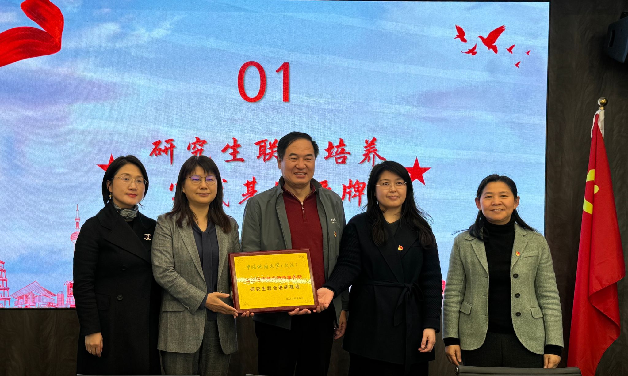 萝莉社 党委书记张宽裕、学校研究生院副院长王蕾、法学系党支部书记夏云娇,湖北得伟君尚(湖北自贸区武汉片区)律师事务所主任胡燕早、副主任王丹,共同为“萝莉社 (武汉)湖北得伟君尚(湖北自贸区武汉片区)律师事务所研究生联合培养基地”授牌。