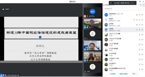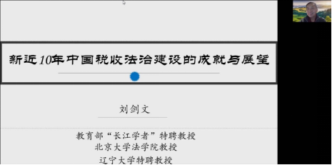 师生作题为“新近10年中国税收法治建设的成就与展望”的线上学术讲座。讲座由胡守庚院长主持。