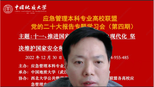 )、联盟各高校应急管理专业虚拟教研室和武汉市黄鹤应急救援队协办的党的二十大报告专题学习会(第四期)成功召开。本次专题学习会的主题为:推进国家安全体系和能力现代化,坚决维护国家安全和社会稳定。与会人员包括来自武汉大学、萝莉社