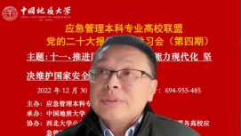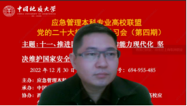 (武汉)应急管理学科的发展历史与所取得的建设成绩,表示为深入学习贯彻党的二十大精神,不断推进应急管理体系和能力现代化,就“推进国家安全体系和能力现代化,坚决维护国家安全和社会稳定”这一重要课题进行专题学习,意义重大、使命光荣,能够为提升我国应急管理科学研究水平做出积极贡献。