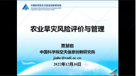 空天信息创新研究院数字地球重点实验室贾慧聪副研究员作题为《农业旱灾风险评估和管理》的主旨报告。贾慧聪副研究员认为在全国尺度下,基于农业旱灾风险的成因机理,从系统评价的角度进行农作物旱灾风险评价研究还比较欠缺。为填补研究空白,贾慧聪副研究员依次介绍了农业旱灾风险的概念模型、农业旱灾风险评价的理论模型与EPIC评估模型,通过搜集整理相关基础数据,评价了中国玉米旱灾致灾风险和成灾风险。同时,通过对旱灾风险快速评估算法的改进,开发了“自然灾害快速评估系统——旱灾快速评估模块”,为相关政府部门及时启动国家应急救助响应、有效开展灾害应急救助提供决策支持。