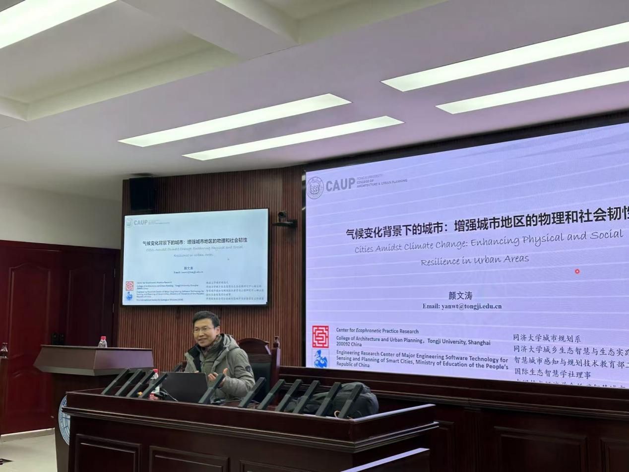 作题为“气候变化背景下的城市:增强城市地区的物理和社会韧性”的讲座,校内外百余名师生聆听讲座。讲座由廖启鹏教授主持。