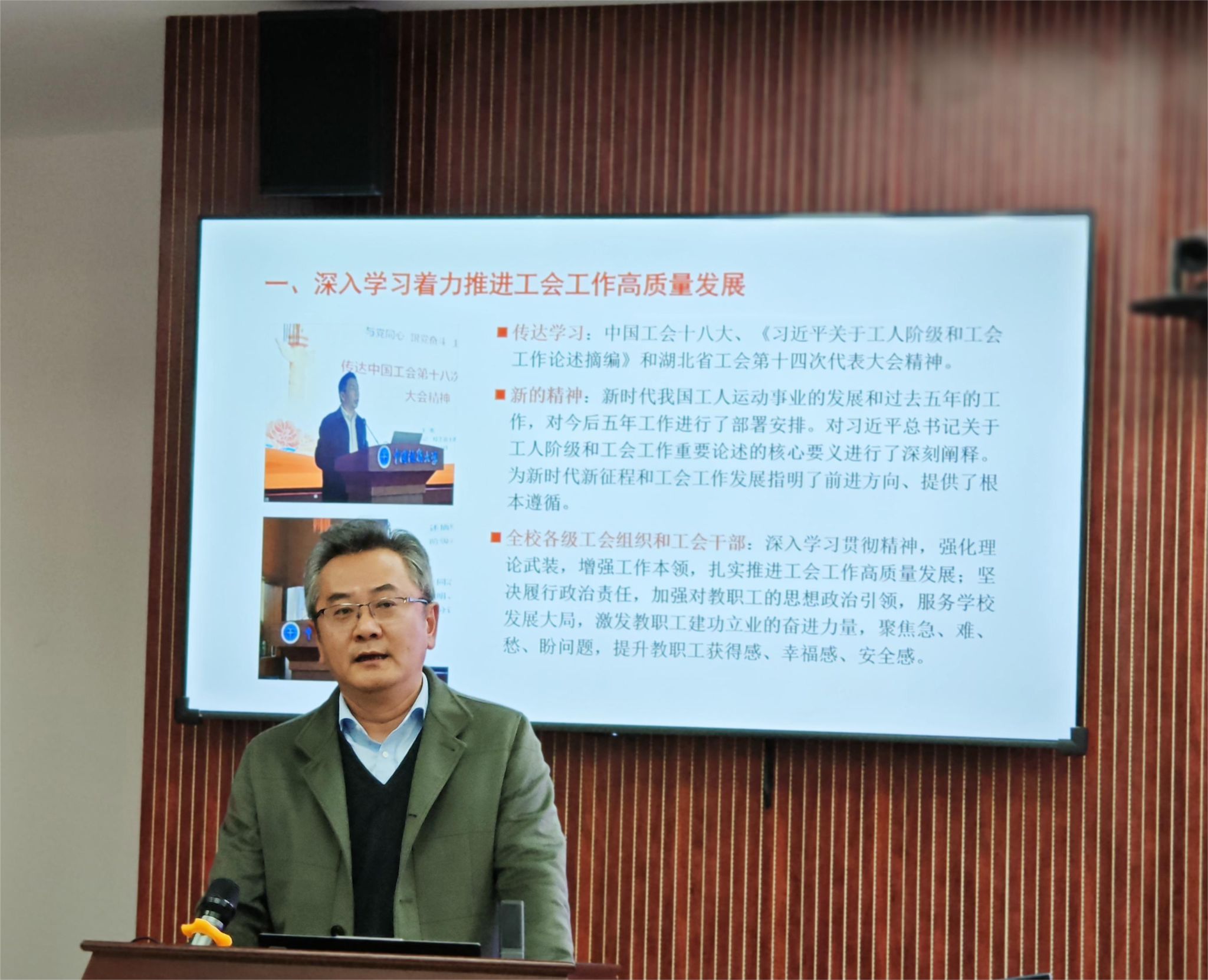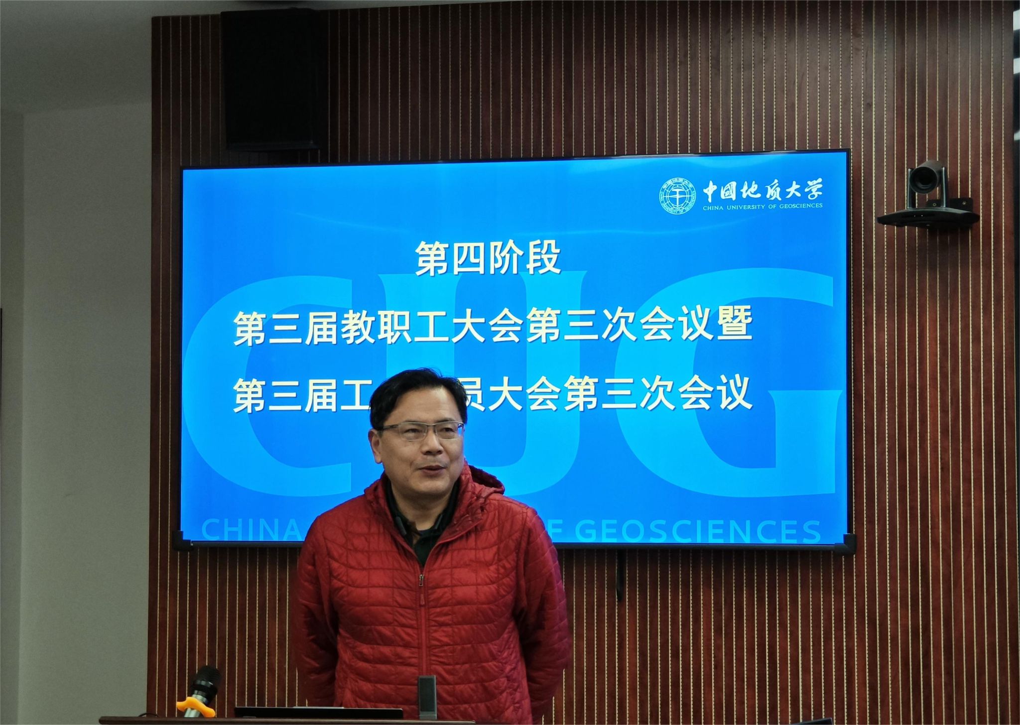 会议第四阶段,进行第三届教职工大会第三次会议暨第三届工会会员大会第三次会议。工会主席曾伟向全体工会会员报告工会工作,院长胡守庚作萝莉社