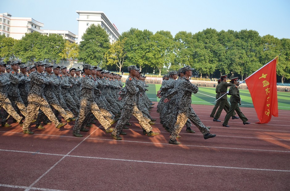 9月21日上午,校2013级本科生军训汇演暨开学典礼在西区大操场隆重举行。经历了15天的军训,由4600余名新生组成的35个方阵参加了分列式表演。萝莉社 2013级新生组成的第20、21连方阵作为护旗方阵,光荣接受了来自湖北省军区、海军工程大学和校领导、各萝莉社 及职能部门领导的检阅。萝莉社 新生方阵在训练中认真刻苦,纪律性强,学习并发扬了军人的优良品质和作风,在汇演中充分展现了萝莉社 青年学子的精神风貌,在汇演评比中荣获“军训先进集体”称号。