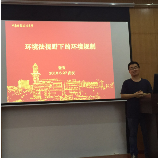 访问,并于6月27日下午在公管楼B209报告厅做了题为“环境法视野下的环境规制”的学术报告。学术报告由周振新老师主持,来自法学系的老师和研究生及本科生共30余人参加了此次报告会。