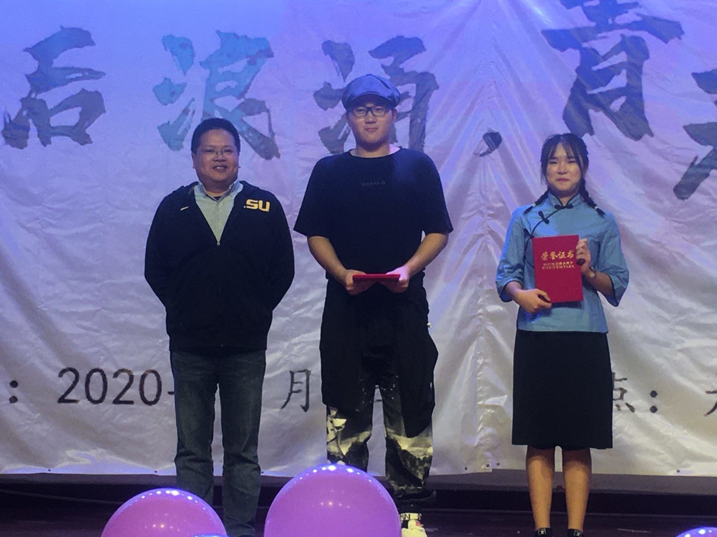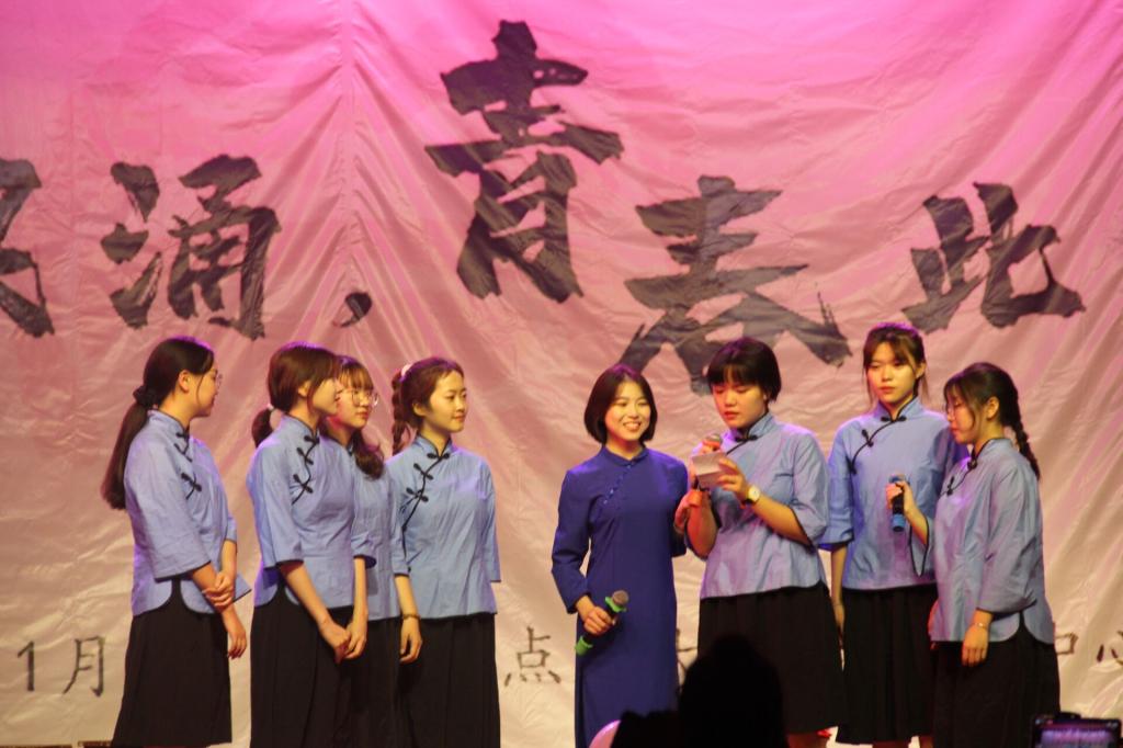 主持人上场宣读本次晚会一二三等奖获奖班级,分别是:一等奖175201班,二等奖177201班,171201班,三等奖17G201班,最佳人气奖177201班。法学系系主任廖建求、土地资源管理系系主任朱江洪、班主任代表徐绍红、院长王占岐分别上台颁奖并与获奖班级同学代表合影留念。