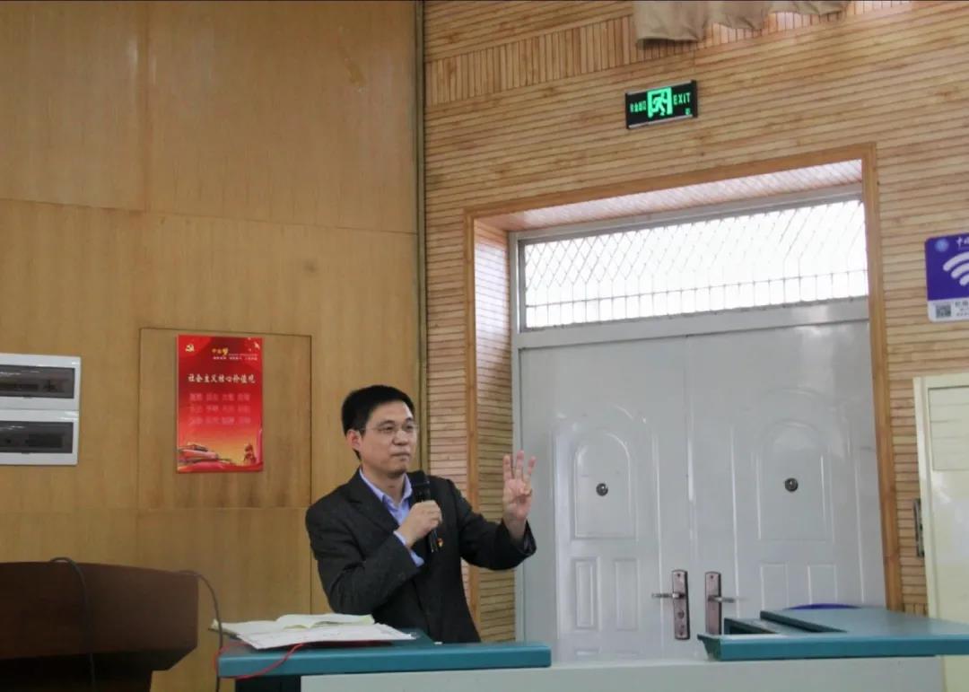 接下来,刘国华书记总结了前面两位老师的发言,向大家介绍了学工组团队的组成情况。他表示老师们会尽自己最大的努力为同学们的学习和全面成长成才提供帮助,然后以“惜时,律己,静心”为主题讲话。他多次强调了考风考纪的重要性,指出目前存在部分寝室卫生不达标、有同学上课睡觉等问题。他提醒同学们,大学学习必须要有较强的自律性和自主性,只有守纪律、正学风、负责任、讲效率,才能成为有担当的新时代新青年。