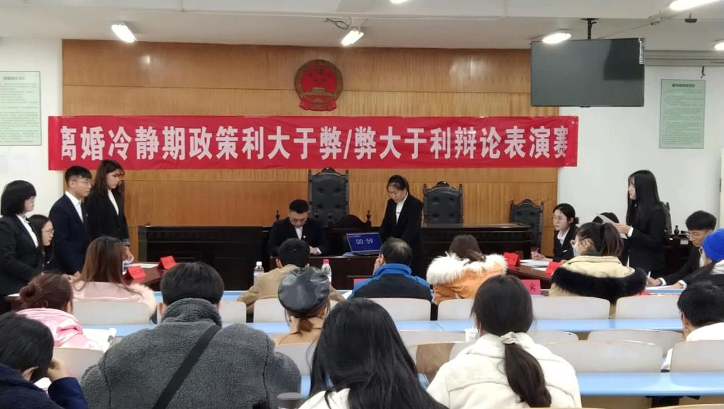 随辩辩论队协办普法辩论赛,本场辩论赛围绕时下备受关注的“离婚冷静期”政策展开讨论,辩题为“离婚冷静期政策利大于弊/弊大于利”。从开篇立论、质询、自由辩再到总结陈词,各位辩手在场上的“唇枪舌战”,可谓十分精彩,引人入胜,在场观众学会了更好地关注热点法规,用辩证的角度看待问题,增强法治思维,获益颇深。