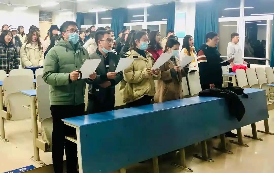 党委书记张吉军老师、党委副书记刘国华老师在内的共12位老师及83名本研学生共同为大家带来了一首红色经典。