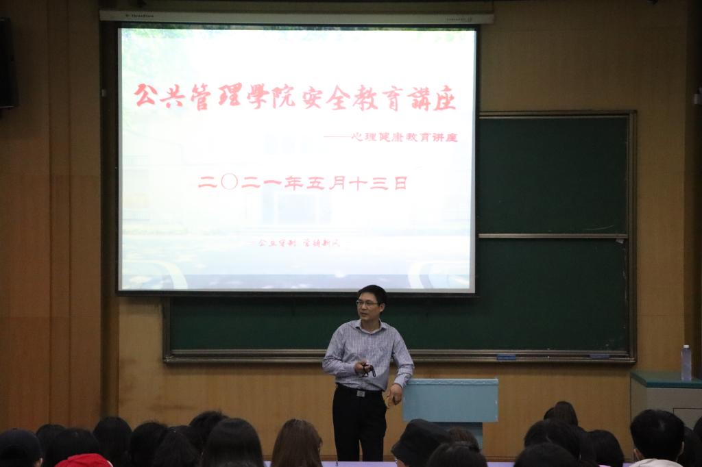 (武汉)应用心理研究所吴和鸣副教授、保卫处单红峰副处长对大家进行心理健康以及防范电信网络诈骗安全教育。