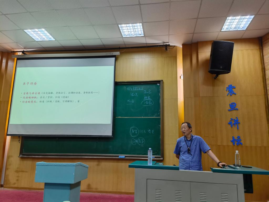 吴老师首先向大家介绍了心理学的对象和心理学的研究方法,而后从“行为”“认知和情感”等方面着手,进行深入的讲解。通过大量生动形象的小故事,吴老师告诉大家,我们对自己的了解、对自己各种行为的了解,以及同学们相互之间的了解,这些都非常重要。我们不仅要掌握自己行为的变化,而且还要了解同学们的行为变化,及时向老师进行反馈,以给予其适当的关注。