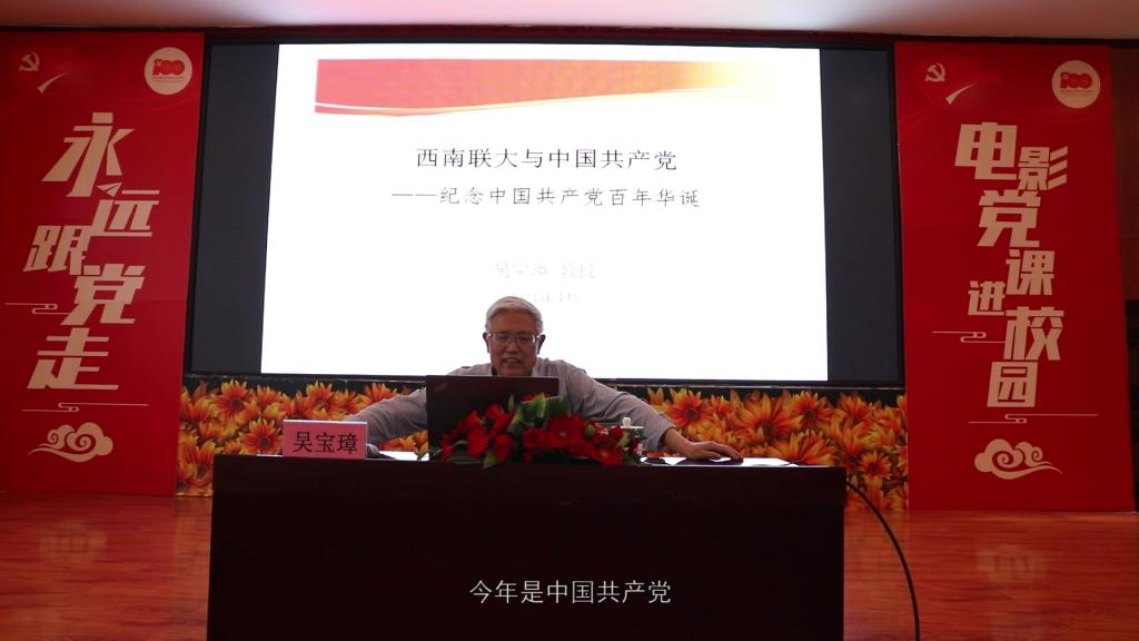 大家首先观看了吴宝璋教授讲授的电影党课视频《西南联大与中国共产党》。吴教授从组建西南联大的清华大学、北京大学、南开大学三所高校切入娓娓道来讲到,故土在战争中沦陷,大学被占领、被炸毁,一群十八九岁的青年学生匆匆出发,徒步南迁,横穿湘黔滇来到联大。联大近9年间有党员206人,在特殊时期开展抗日爱国民主运动中发挥了特殊历史作用和核心作用。