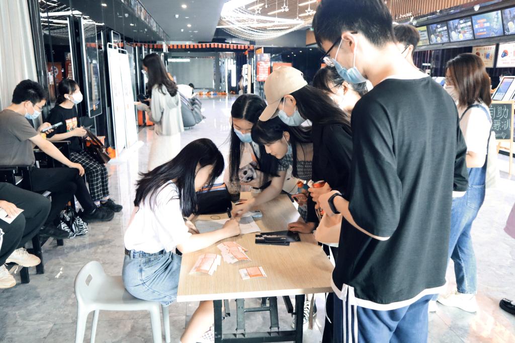 同学们佩戴党徽、团徽和口罩来到影院,党支部还准备了《九零后》的电影周边。