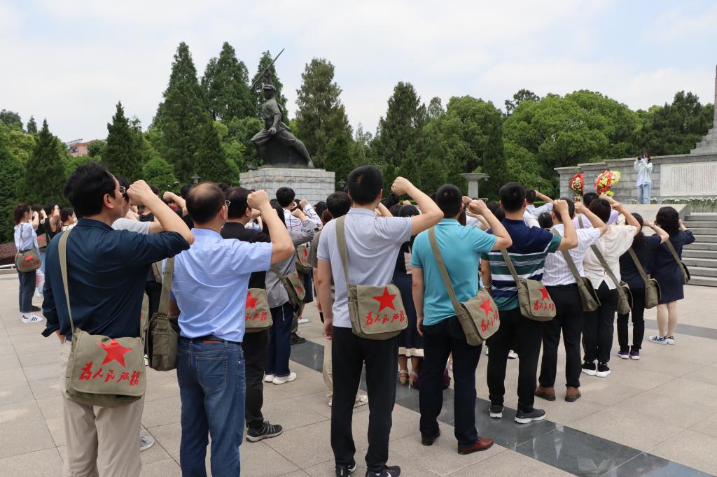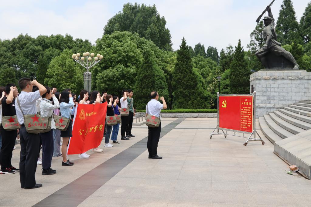 党委书记张吉军带领师生党员在黄麻起义和鄂豫皖苏区革命烈士纪念碑前重温入党誓词,全体师生向革命烈士默哀、敬献鲜花并鞠躬致敬。