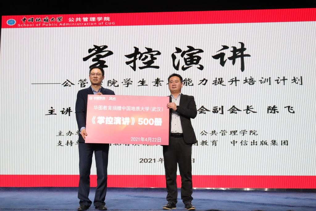 接受华图教育捐赠的500册《掌控演讲》图书。