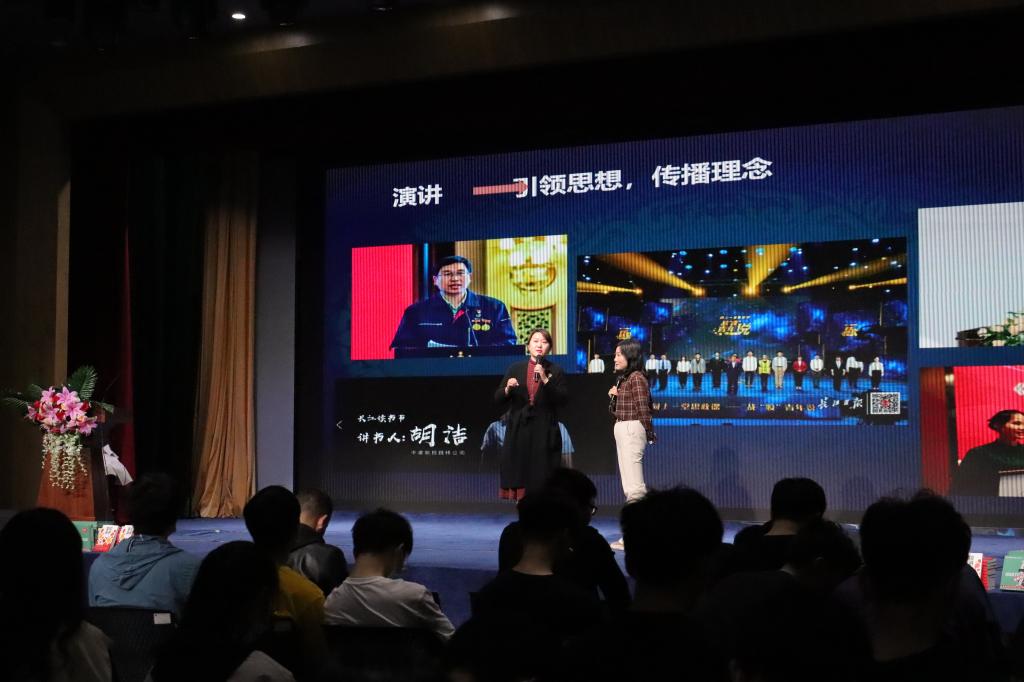 讲座中,陈飞老师和与会同学们就如何克服演讲的紧张、如何做一个好的自我介绍做了详尽的培训和互动,还邀请湖北省演讲协会的优秀会员代表、中建铁投路桥公司团委书记胡洁,现场和同学们分享了她和演讲的故事。
