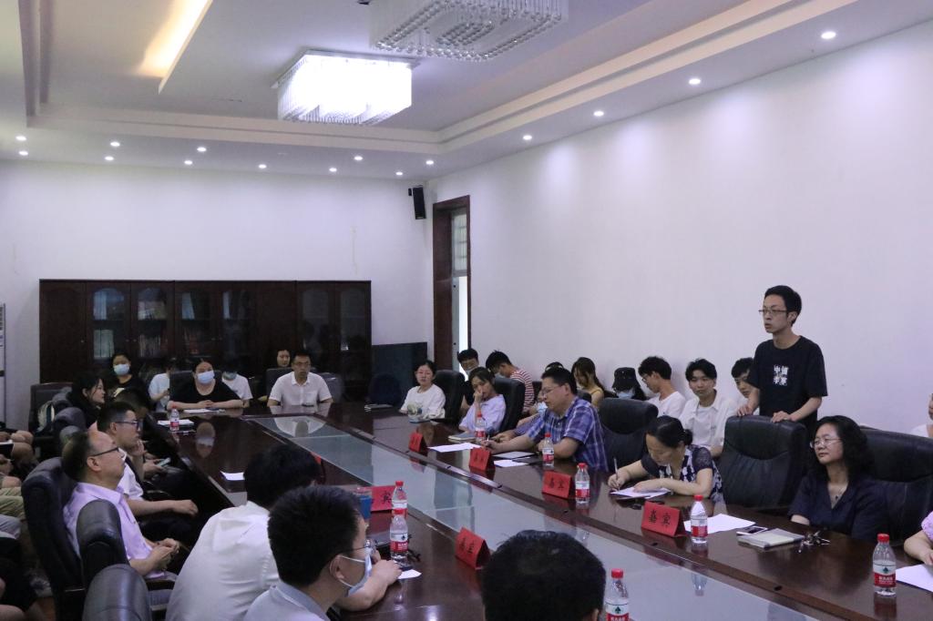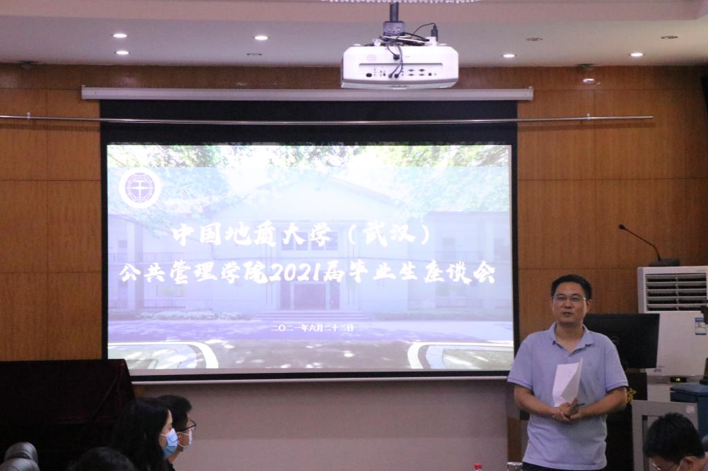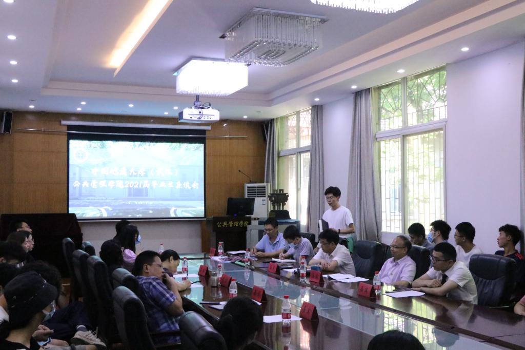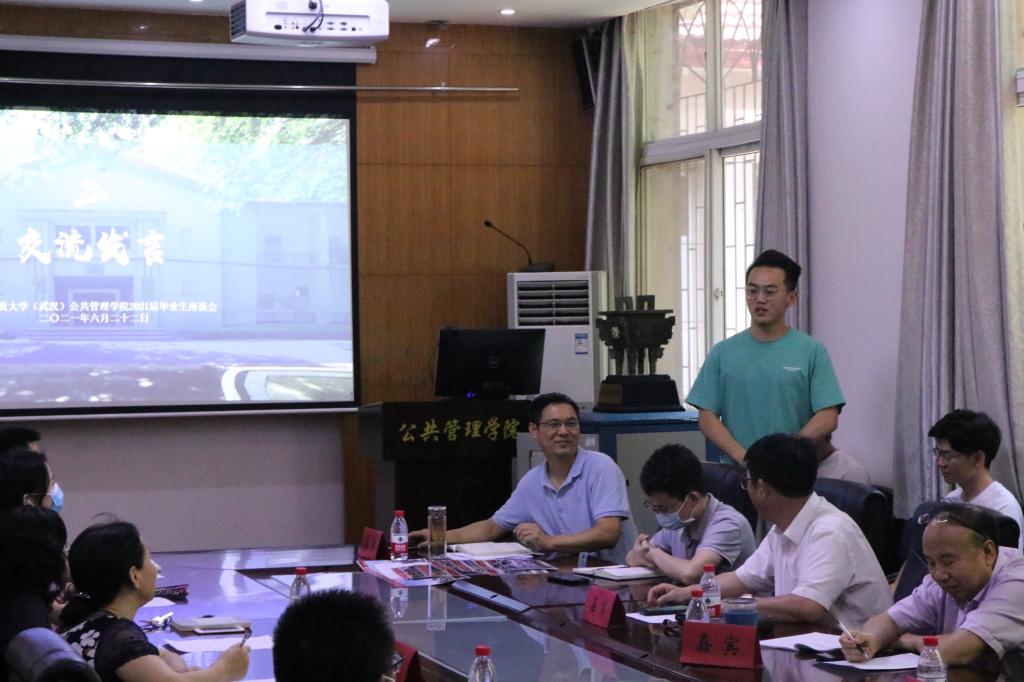 在公管楼B209会议室召开2021届毕业生座谈会。参与座谈会的有院党委书记张吉军、副院长才惠莲、党委副书记刘国华、公共行政系党支部书记刘中兰、法学系主任廖建求、土地资源管理系党支部书记暨175172班班主任周学武、土地资源管理系主任朱江洪、教务科胡玲,学工组毕业年级辅导员辅导员吴波、王青涛和兼职辅导员周佳仪,部分2021届本研毕业生代表。座谈会由党委副书记刘国华主持。