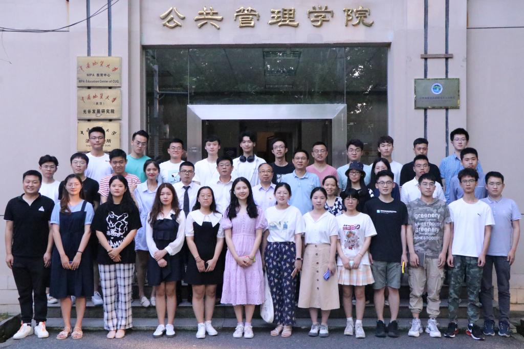 座谈会后,与会师生在公管楼下合影留念。