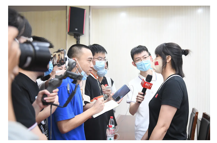 羽毛球教练邹师思接受媒体采访(摄影 张玉贤)