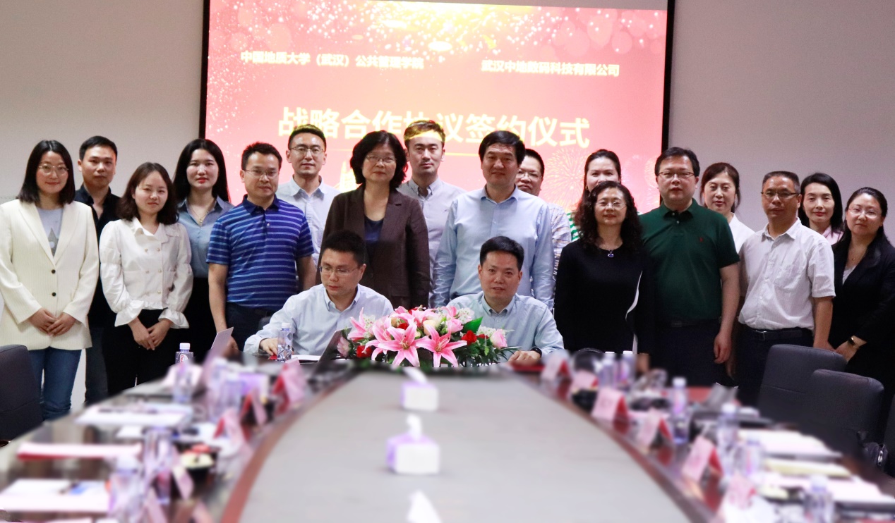 党委书记张宽裕、院长胡守庚等一行前往中地数码集团参观交流,并与中地数码集团签订了战略合作协议。中地数码集团总裁刘永教授、董事长吴亮、副总裁黄胜辉、助理总裁付建会及部分工作人员参与了此次活动。