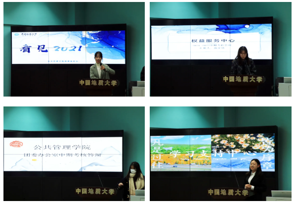 紧接着,团委组织部从“求真以务实,创新以奋进,自省以更正,展望以前行”四个板块回顾了部门工作,展示了他们的工作成果。而后,团委志愿服务银行汇报了本学年举办的一系列志愿活动,让大家看到了他们的创新与进步,并在最后提出希望团学各部门加强内部成员沟通、共同建设具有公管特色的部门文化。