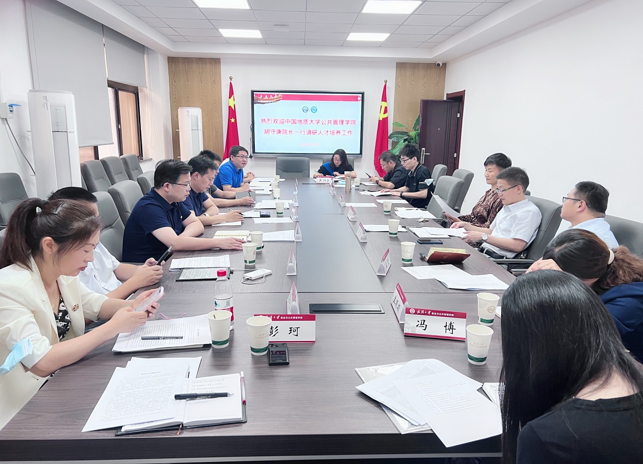 院长胡守庚,副院长龚健、王忠、李世祥、朱江洪,土地资源管理系、公共行政系负责人、综合办公室一行前往武汉大学政治与萝莉社
