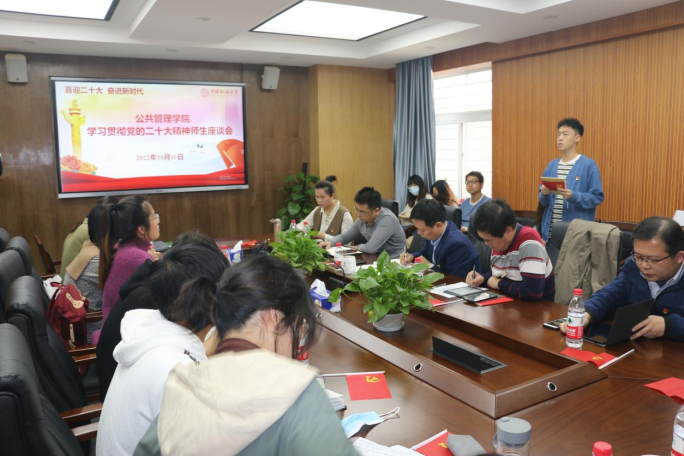 在227会议室召开学习贯彻党的二十大精神座谈会。习近平总书记的报告高瞻远瞩、催人奋进,引发师生热议,纷纷畅谈心得体会。
