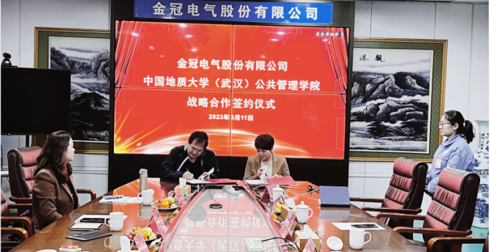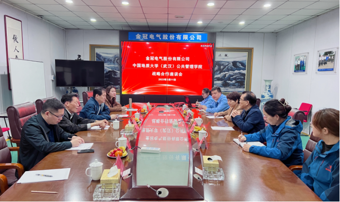 党委书记张宽裕、副院长李世祥、副书记龚丽一行前往金冠电气股份有限公司(以下简称金冠)开展访企拓岗,与公司董事长樊崇、党委书记王海霞、副总经理马英林及有关部门负责人座谈交流,并签订战略合作协议。