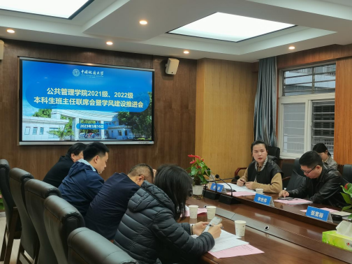 党委书记张宽裕,副院长李世祥、朱江洪,党委副书记龚丽,土地资源管理系主任方世明,公共行政系书记刘中兰,公共行政系副主任钱文强,法学系副主任宋冬冬、涂亦楠,本科生教学秘书胡玲,2021级、2022级本科生各班班主任及年级辅导员参会。龚丽主持会议。