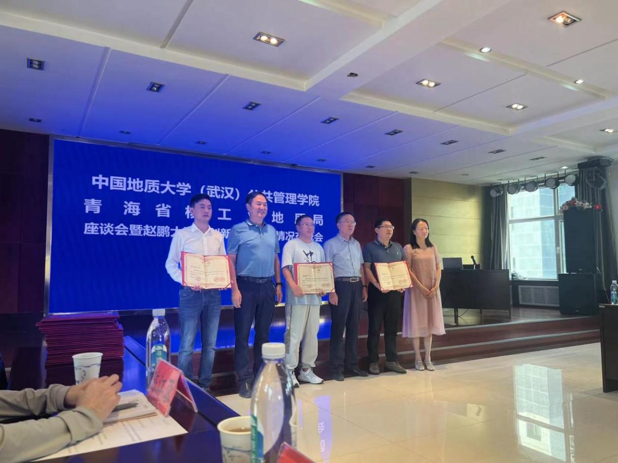 的基本情况及支撑院士创新中心建设情况,李世祥教授汇报“湟水流域(西宁段)水污染治理关键技术预研发及应用”及“青海昆仑英才高端创新创业人才项目”等院士创新中心目前主要在研项目的进展情况。雷占昌副站长汇报了赵鹏大院士创新中心的运行情况和取得的成果。随后,双方围绕赵鹏大院士创新中心建设及人才培养、项目合作等方面进行交流研讨。此外,主要领导为院士创新中心工作站站长、副站长以及学术委员会委员颁发聘书。