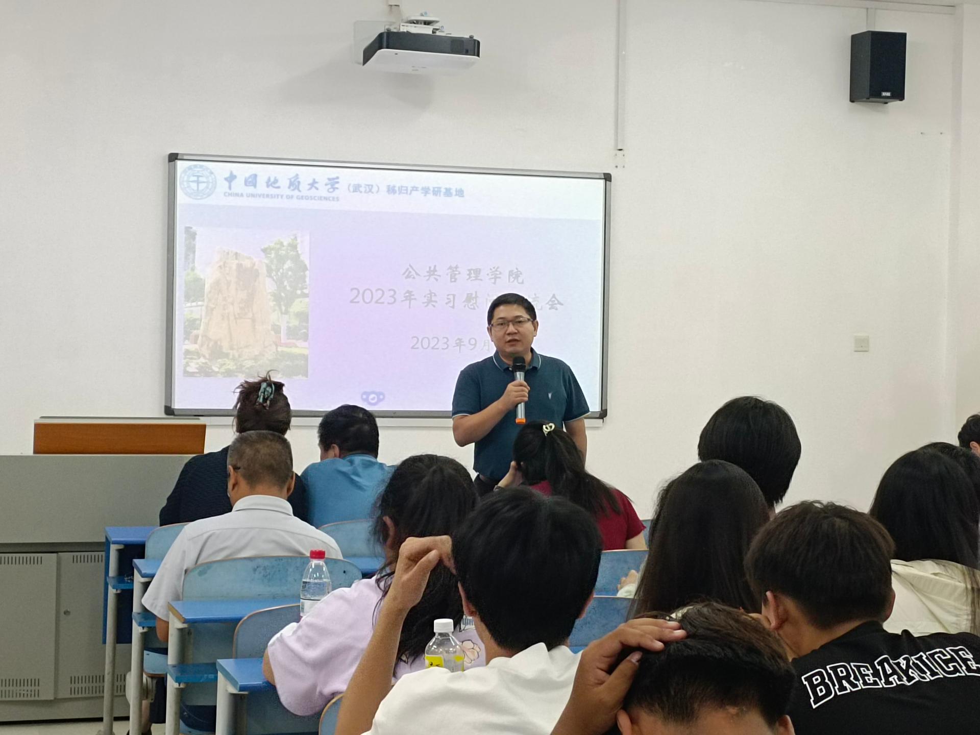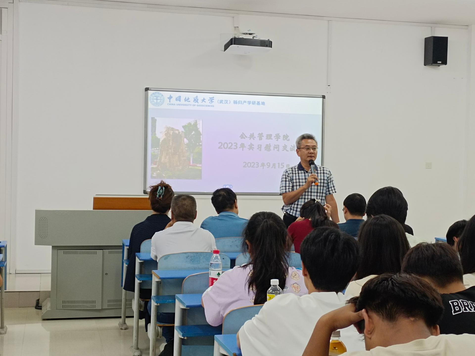 一直以来十分重视人才培养中的实习实践,专程来秭归看望,是对带队老师的辛勤劳作表示感谢,是对同学们前一阶段在实践实习方面取得的良好成绩表示祝贺,更是对能更好地完成后一阶段的实习任务来鼓劲。他从学校四个实习基地的建设发展及温家宝题名“摇篮”的寓义,谈到课堂教学与实习实践紧密结合的重要性,并叮嘱同学们一定要充分珍惜在美丽秭归的黄金实习机会,巩固所学科学文化知识,了解当场风土人情,感受党和国家给劳动人民带来的美好福祉,从而更牢固地树立天下为公的公管情怀,锤炼追求善治的过硬本领,将所学与国家发展紧密结合,以期将来献身中华民族的伟大复兴!