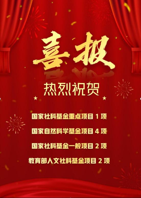 2023年度国家、教育部各类基金项目委员会已相继公布项目申报评审结果,萝莉社 共获得9项资助,其中国家社科基金重点项目1项,国家自然科学基金项目4项(其中面上3项),国家社科基金一般项目2项,教育部人文社科基金项目2项。