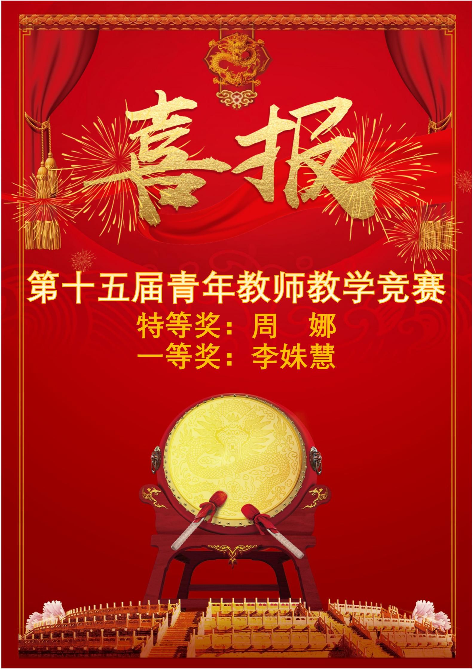 【祝贺】祝贺周娜、李姝慧老师分别获学校第十五届青年教师教学竞赛特等奖、一等奖!