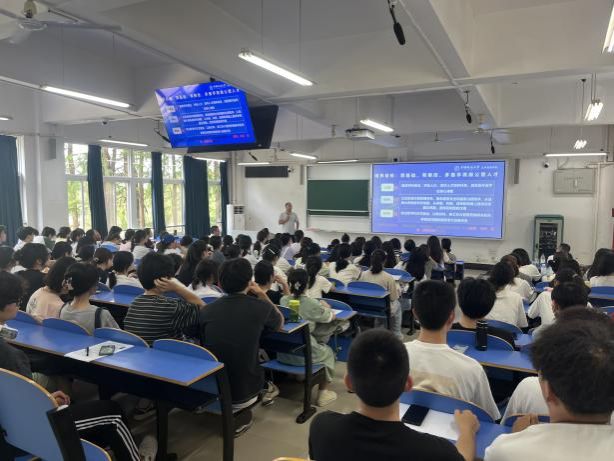 公共行政系主管本科教学工作的副主任钱文强老师从培养特点、培养过程、培养方案及培养成效等方面进行详细讲解。他提到,本科培养以“夯实理论基础、拓宽知识视野、提升实践素养”为特点,培养过程贯穿“课程学习—实践实训—毕业设计”三个阶段,帮助学生构建完整的知识体系与能力结构,并为新生梳理了四年的学习规划重点。此外,钱老师还巧妙运用“木桶理论”,提醒新生既要发现自身短板并及时补齐,也要找准优势领域持续强化,实现全面发展与特色成长的有机统一。